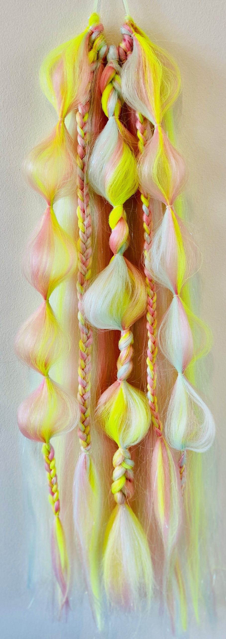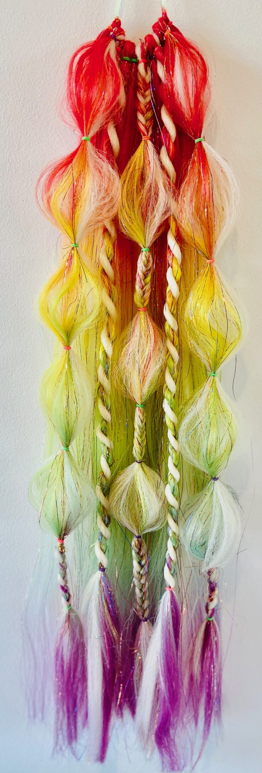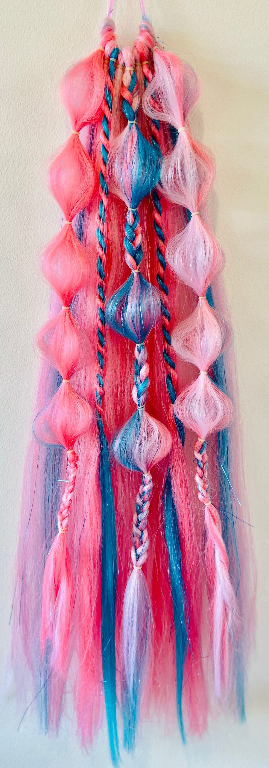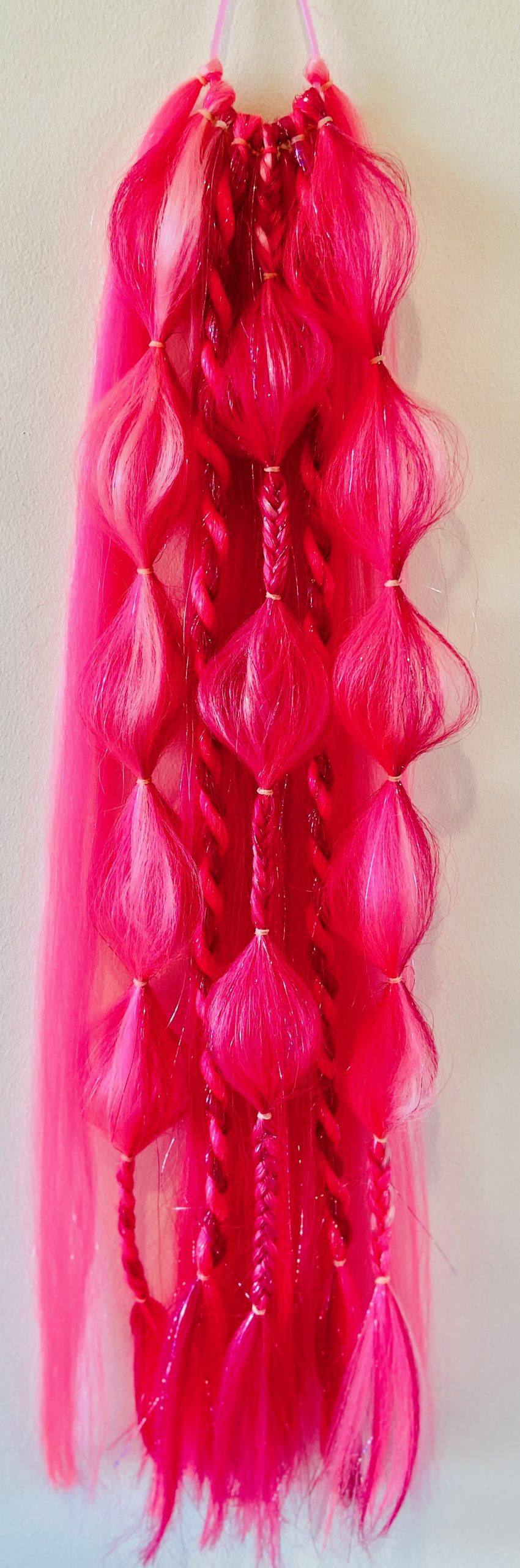 Express your unique self with a choice of over 12 varieties of spectacular tie in reusable BUBBLE BRAIDS that you can attach yourselves at home.